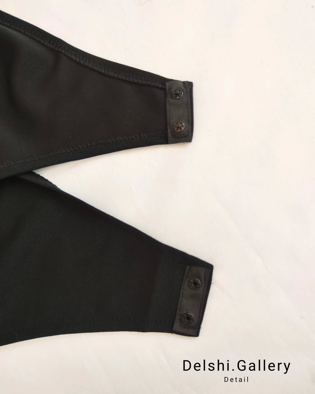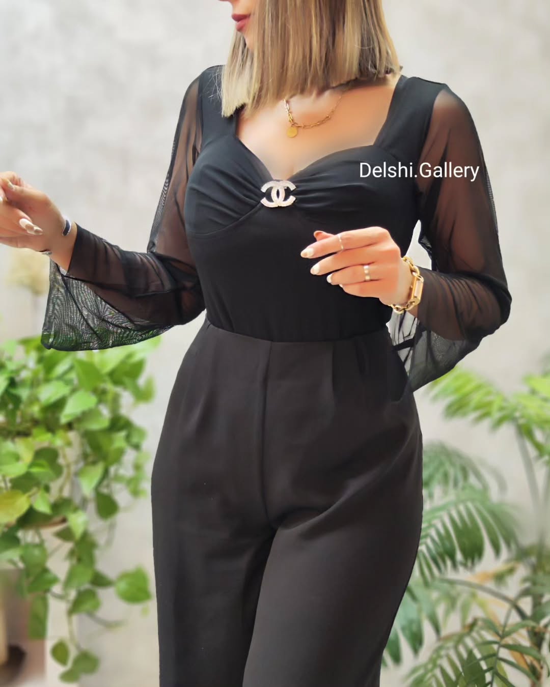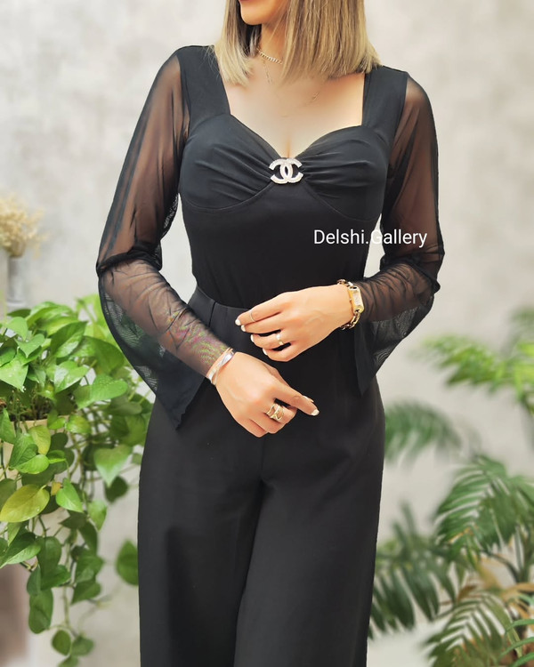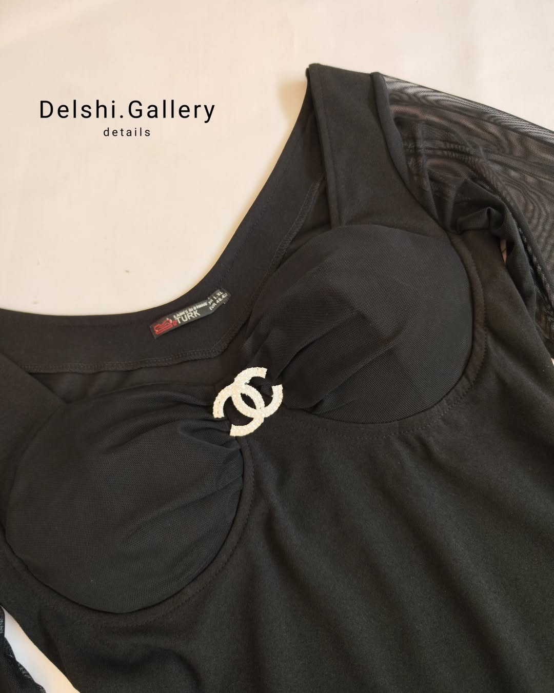 بادی مجلسی خاص و خوشگل با جنس دالقیچ ترک و تور لطیف در رنگبندی مشکی. برای سایزهای مختلف طراحی شده است.